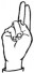 На ћирилици написано СОФИЈА ГОДОЧЕВИЋ састоји се из 15 слова [?]. Исписано ћириличном једноручном азбуком за глувонеме: